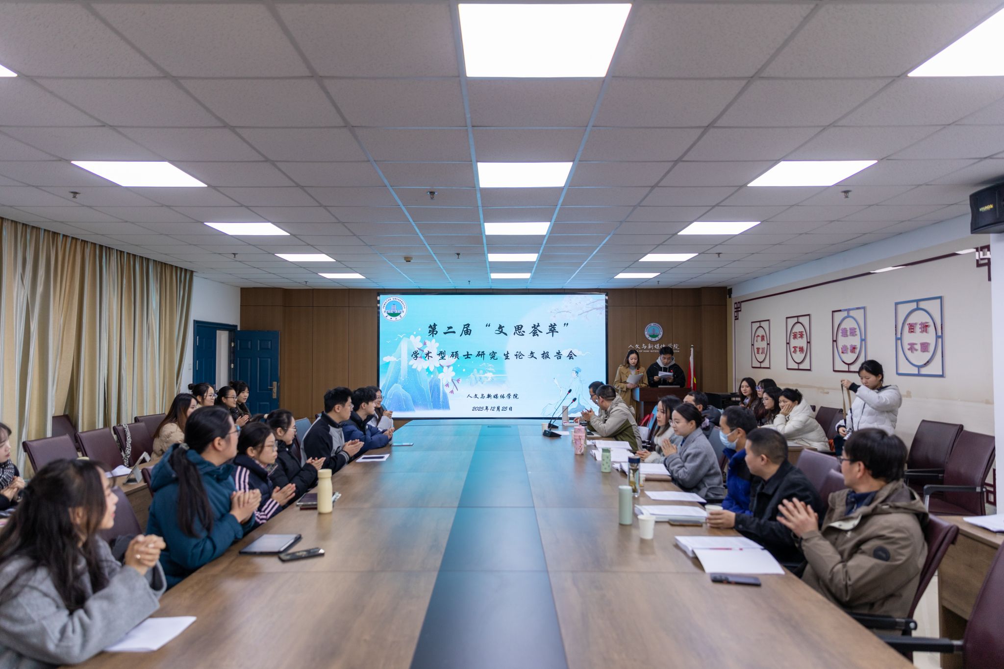 (通讯员 程丰)12月25日下午,皇冠集团网站第二届“文思荟萃”学术型硕士研究生学术论文报告会在文科楼705会议室顺利举行。杨家海、陈力、肖祥、赵标、吴新平、徐伟、袁咏心、李慈等老师以及2024级全体学术型硕士研究生、2025级部分学术型硕士研究生参加此次报告会。