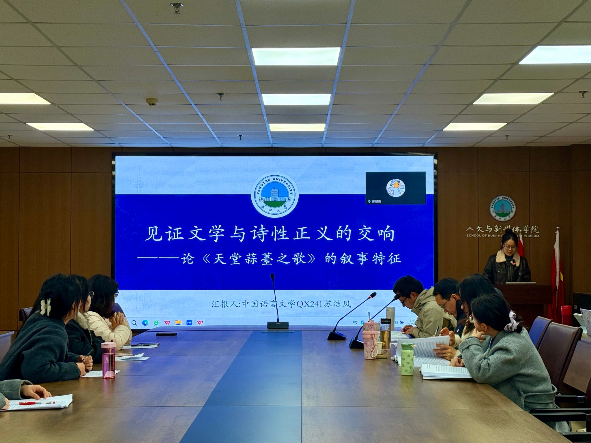 开幕式后,论文报告会在文科楼705会议室、701会议室两个分会场同步开展。参与汇报的研究生们围绕文学领域前沿热点与核心议题各展所长,系统分享了阶段性研究成果。汇报内容覆盖面广、内涵丰富,既包含对古今中外经典作品的深度解读,也聚焦地域语言、方言文化的特色探索。