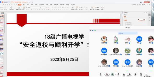 本次系列班会采用腾讯会议APP召开。主题班会开始前,各班班主任对本班员工进行点名和签到,确保所有员工到会。主题班会从返校安排、返校前的准备、报到流程、校园管控三阶段和学费缴纳五个方面展开,各年级辅导员和班主任为大家重点讲解了分批返校和校园管控三阶段的具体安排,强调了返校前必须的14天连续健康打和按流程返校,并将“申请—审批”制度的具体做法向员工进行了说明。
