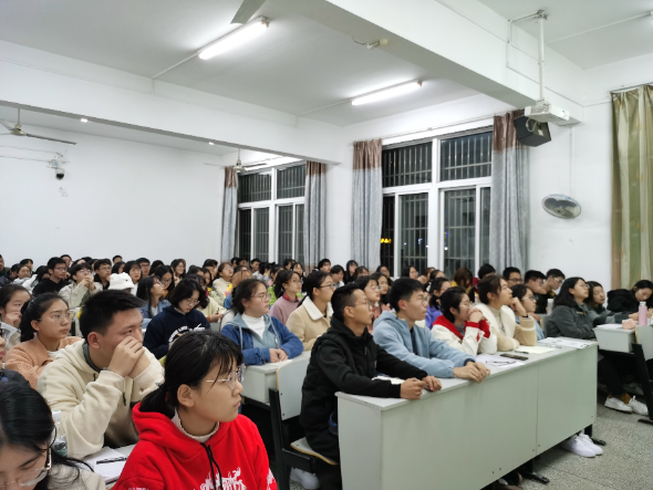 首先,严实老师用幽默的语言为同学们讲述了本次培训的目的以及心理健康问题普遍存在于我们身边这一事实。严老师表示心理问题并不可怕,关键在于早发现、早处理。然后,严老师就心理健康问题的产生原因、具体表现、关注心理健康问题的重要性以及如处理方法几方面进行了具体的讲解。最后,严老师以简单的问卷形式结束了本次培训,同学们反应良好。