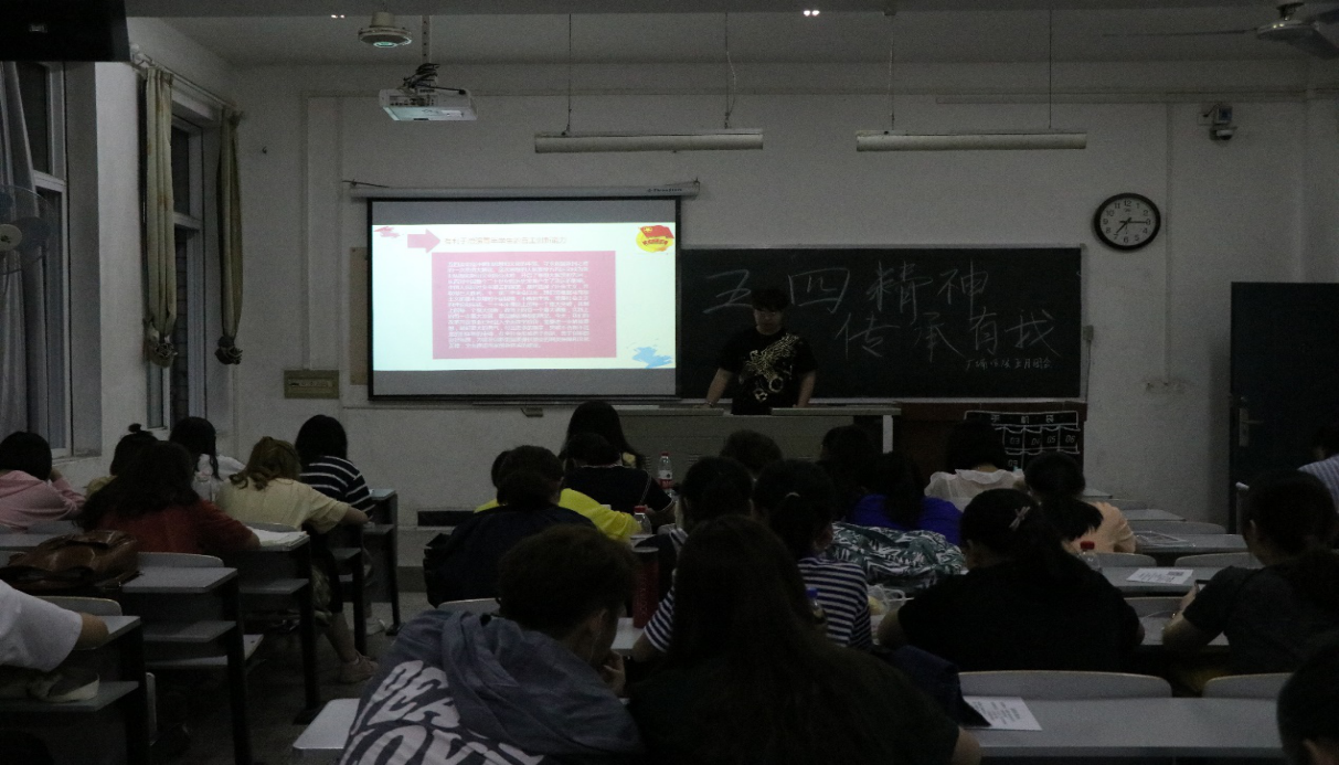 2.在《中国共青团团歌》的歌声下,主持人王明明带领同学们学习关于团的相关知识;“爱国、进步、科学、民主,作为员工的我们,要努力学习,把个人命运与祖国命运紧密联系在一起,自觉服务祖国和人民。”历史11701班周杰同学说最后,全体同学一起重温入团誓词,“五四精神,传承有我”主题团会圆满结束。