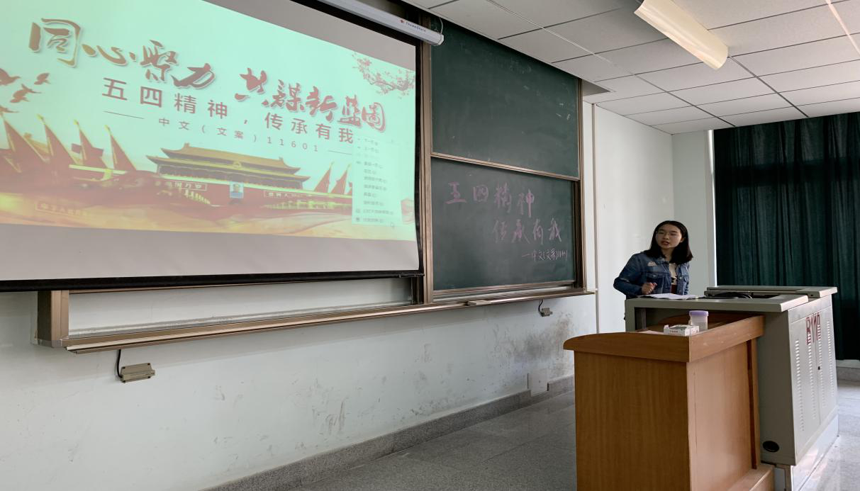 5.中师11701团支部由团支部书记李海敏领誓,结束后主持人宣布团日活动正式开始;由主持人播放ppt讲解五四爱国运动的历史事件和五四精神;观看爱国主义思想教育影片《我的1919》中的经典片段;以“五四”和青年大学习为主题设题,采取竞答方式,增强趣味性;邀请3位同学讲述自己在社会实践活动中的青春奉献故事,并分享一下自己对青春的理解;合唱歌曲《相亲相爱一家人》。班主任杨蓉老师针对团日活动内容进行总结。