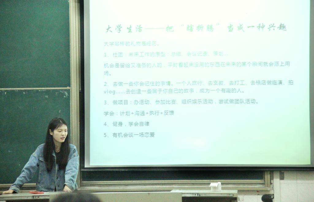 (通讯员 田蓉蓉 摄影 蒋精懿)榜样的力量催人奋进。5月12日晚七点,西校区2教T1内举行了《学业生涯规划——兴趣与内驱力》的主题讲座,本次讲座针对18级广编、广电专业大一员工。讲座邀请了今年分别被北京大学和华中师范大学录取的15级员工:柴巧卓、黄宪成前来传授经验。他们结合自己本科学习经历,面对面分享自己大学四年的学业规划。