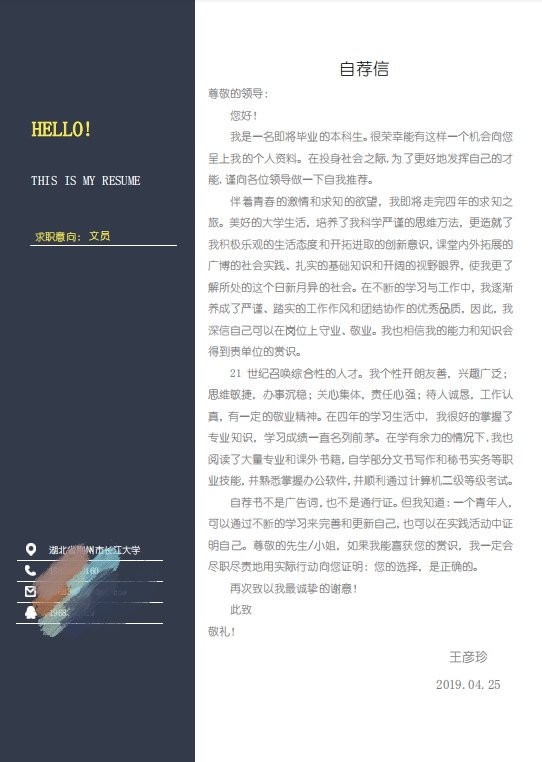 附件:优秀简历展(自愿展示原则)
