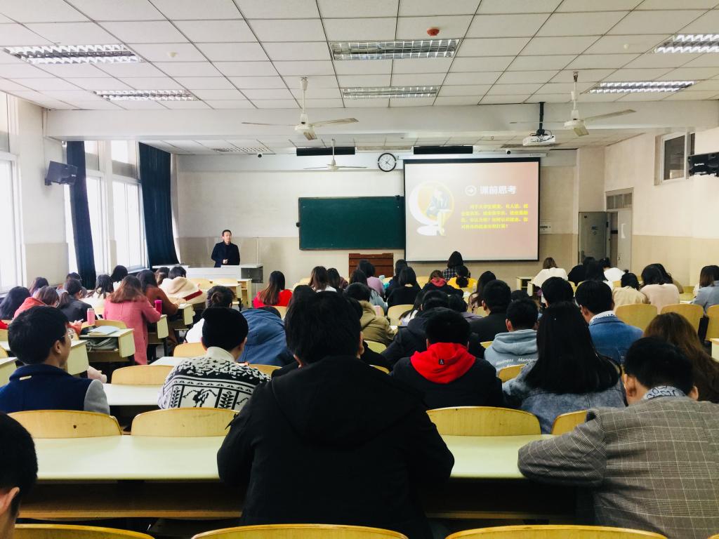 讲座开始,周书航老师从文皇冠集团网站2019届毕业生就业摸底情况出发,结合表格数据向同学们阐述了当前文皇冠集团网站学子的就业选择与就业心态。
