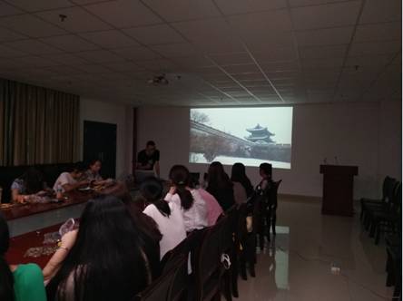 中文11602班集体观看国务院的湖北对外推介宣传片。
