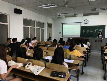 16级广编班主任罗威老师向同学们讲述自己家庭和家乡变化。