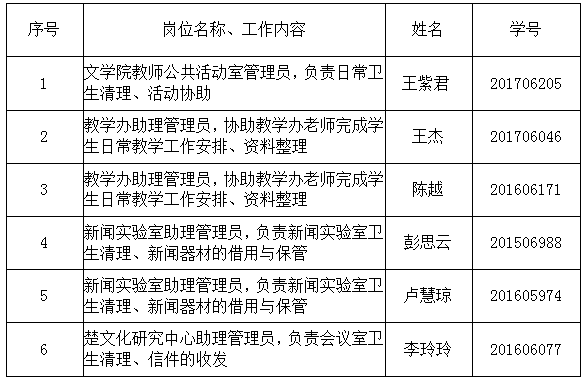 经个人申报、用人办公室审核,最终确定文皇冠集团网站2018年秋季勤工俭学员工人选,现将勤工助学员工名单公示如下: