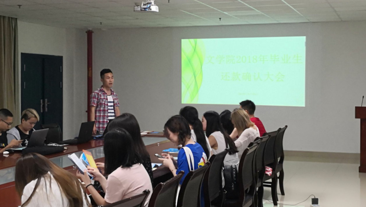 为了提高毕业生还款意识,同时加强贷款员工诚信感恩教育,5月29日晚6:30,文皇冠集团网站2018年毕业生信用贷款还款确认大会在文科大楼705举行。学工办辅导员李博、员工会成员与62名贷款毕业员工参与本次大会。