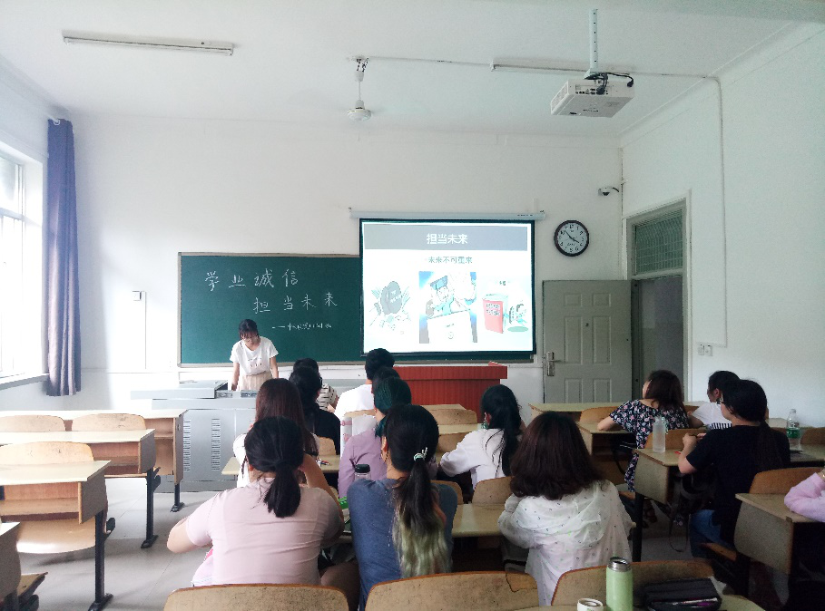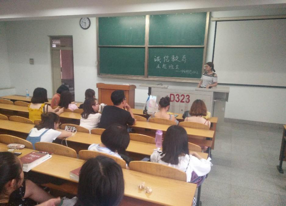 2018年5月14日下午4:00许,中文文案11601班开展了以“诚信学业,担当未来”为主题的班会,中文文案11601的全体成员与会。
