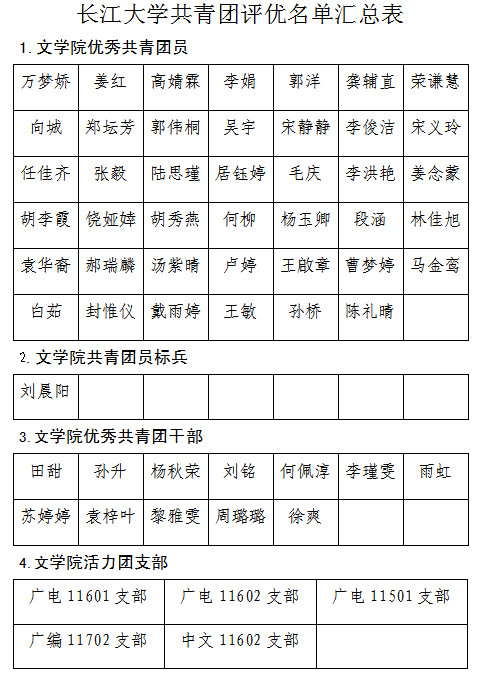 经个人申请、各支部推选、皇冠集团网站团委审核,拟推选姜红等41名同学评为“优秀共青团员”,田甜等12名同学评为“优秀共青团干部”,刘晨阳评为“共青团员标兵”,广电11601支部、广电11602支部、广电11501支部、广编11702支部、中文11602支部评为“活力团支部”,现予以公示(名单见附件)。