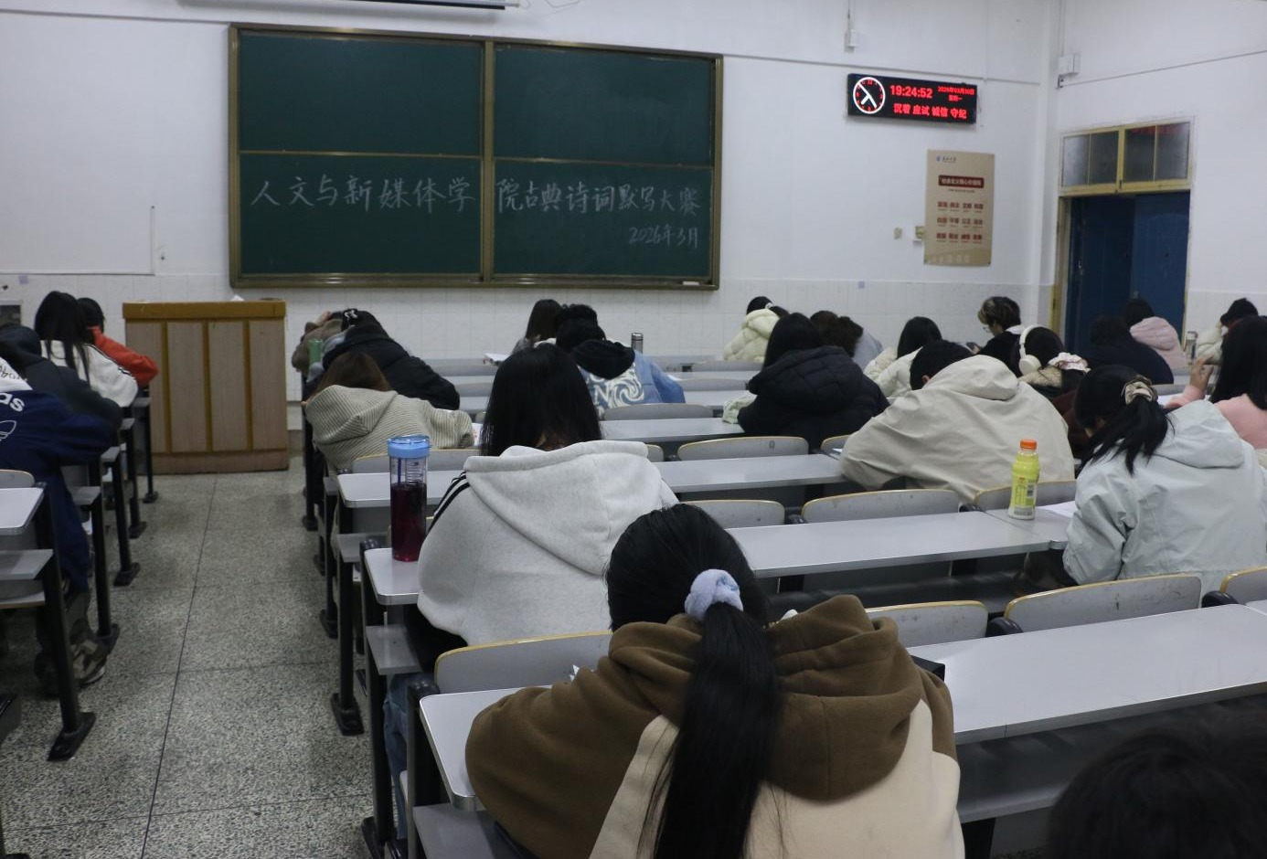 (文/李晨摄/马绮悦 宋子墨)为深入落实立德树人根本任务,扎实推进文化育人工作,传承中华优秀传统文化,营造勤学善思、书香浸润的优良学风,3月30日晚7点,皇冠集团网站在西校区5教115教室、东校区13教C117教室同步举办古典诗词默写比赛,2024级、2025级本科员工近百人参赛。