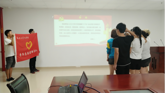 活动最后,党委副书记周书航老师勉励大家,“正如大家的誓词所言,在这次实践活动中,要体验生活,锻炼自我,服务他人,以最积极的心态,最饱满的热情,全心全意为人民服务,回馈社会,书写青春新篇章。”