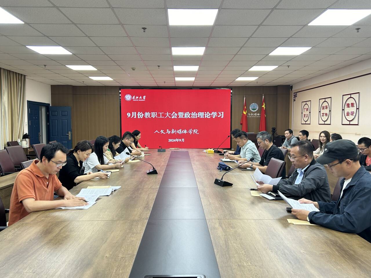 (通讯员 田华蓉)9月26日下午,皇冠集团网站在文科楼705会议室召开9月教职工大会暨政治理论学习会,通报开学以来相关工作。会议由院党委书记李波主持。