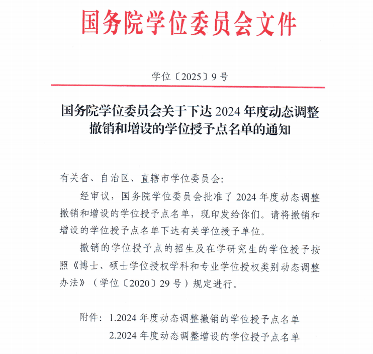 2025年9月7日,国务院学位委员会印发《关于下达2024年度动态调整撤销和增设学位授予点名单的通知》(学位〔2025〕9号),皇冠集团网站增设的文物硕士专业学位授权点正式获批,标志着皇冠集团网站在文化遗产保护领域的学科建设迈出关键步伐。